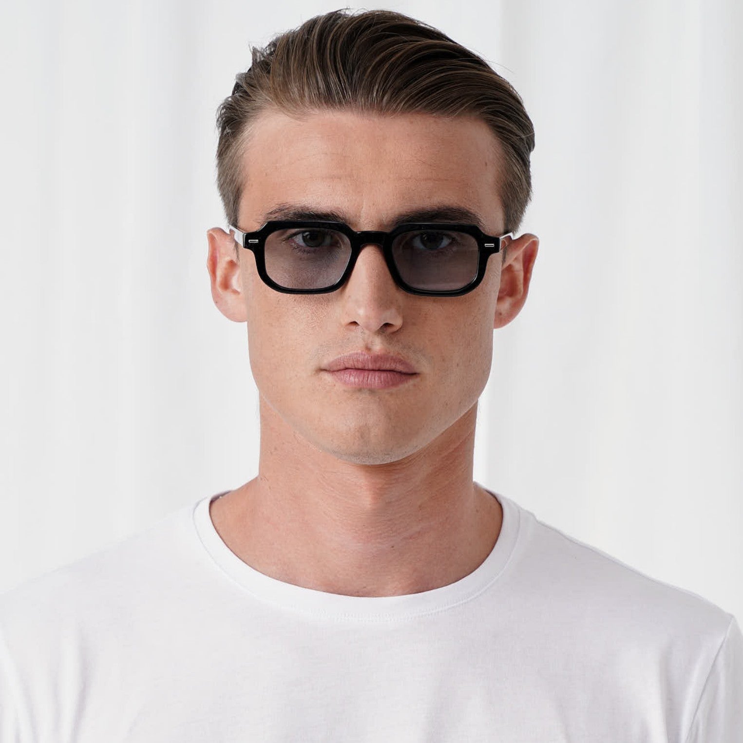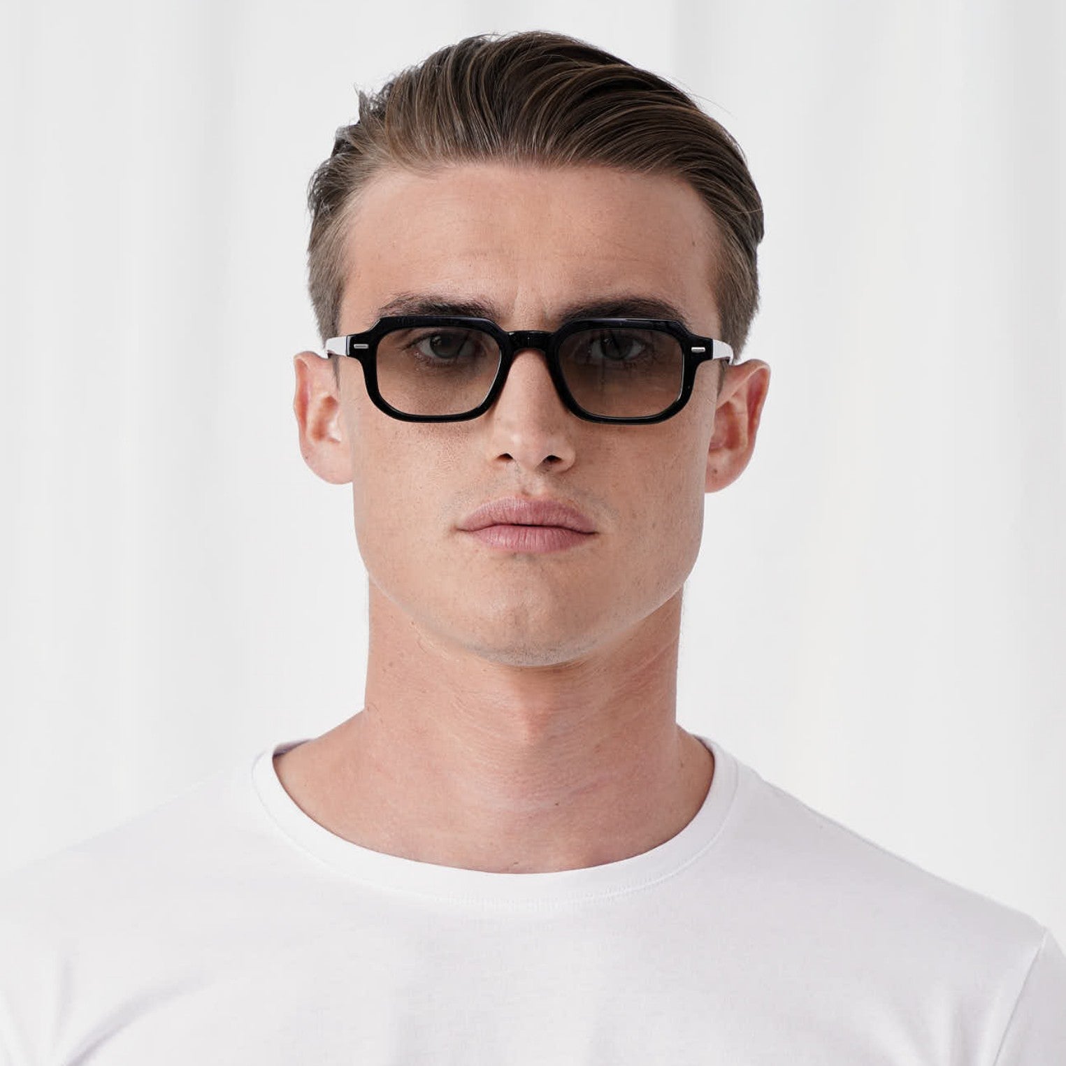 A rectangular design with a black or tortoise frame and stylish tinted lenses. This unisex pair is perfect for all occasions, day or night.